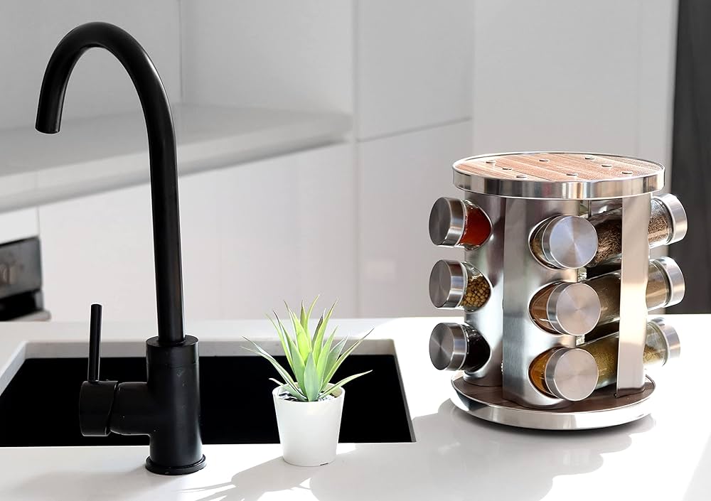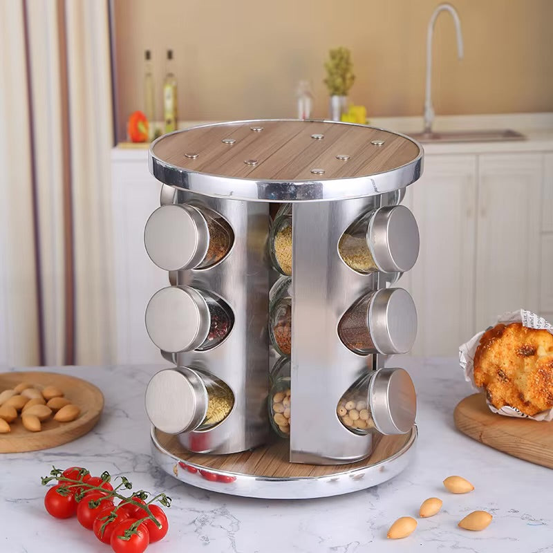 Spice Carousel 360° Rotating Spice Rack, 12 Spice Jars, Food Grade 430 Stainless Steel Rotating Kitchen Spice Rack, Spice Jars for Sprinkling, with Label Paper and Writing Pen ( C634)